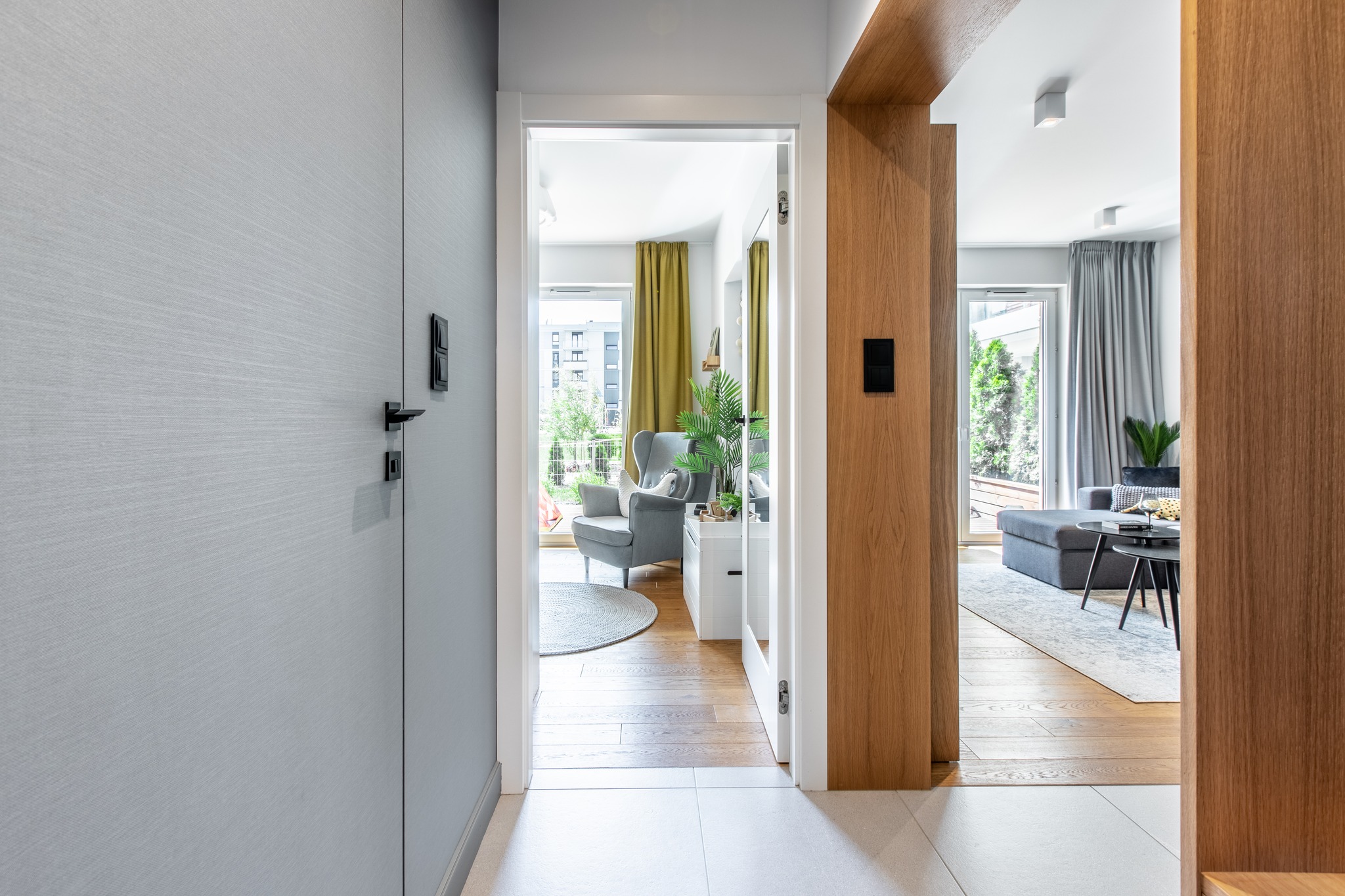 Mieszkanie jest wyjątkowo łatwe w utrzymaniu czystości dzięki przemyślanym materiałom wykończeniowym.