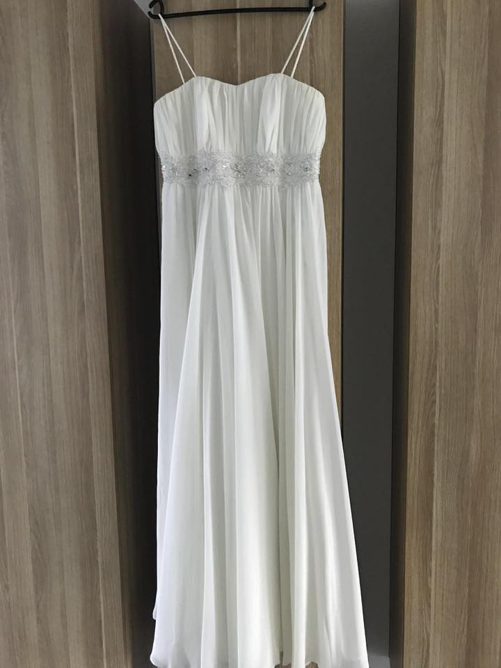 Sprzedam suknię ślubną- stan idealny, kupiona w salonie w Białymstoku, jak nowa /użyta tylko przez godz podczas ślubu/, na ramiączkach lub bez, w komplecie bolerko, wyprana, na każdą figurę- regulacja na plecach, na wzrost 164+obcas. Cena 400zl/komplet, odbiór osobisty Ełk, tel. 732 762 560