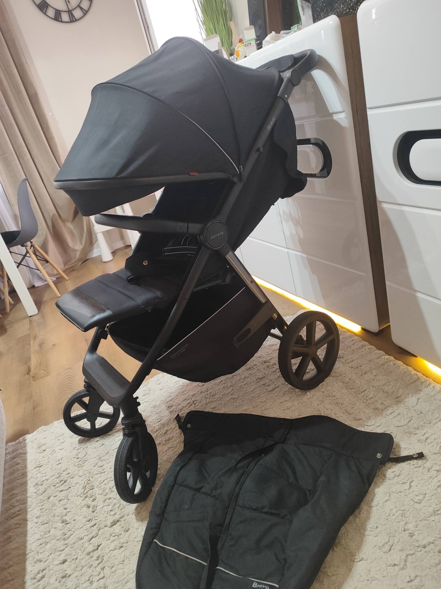 Sprzedam używany wózek spacerowy Carello bravo plus, w zestawie wszystko co na zdjęciu wózek, osłona na nogi, uchwyt bidonu, moskitiera orginalna ( w jednym miejscu szyta bo wciela się w zamek kieszeni wózka) i jedna dodatkowa od innego wózka, osłona przeciwdeszczowa. Stan dobry, nosi ślady użytkowania, sprawny. Odbiór osobisty Ełk Kilińskiego , cena 350 zł