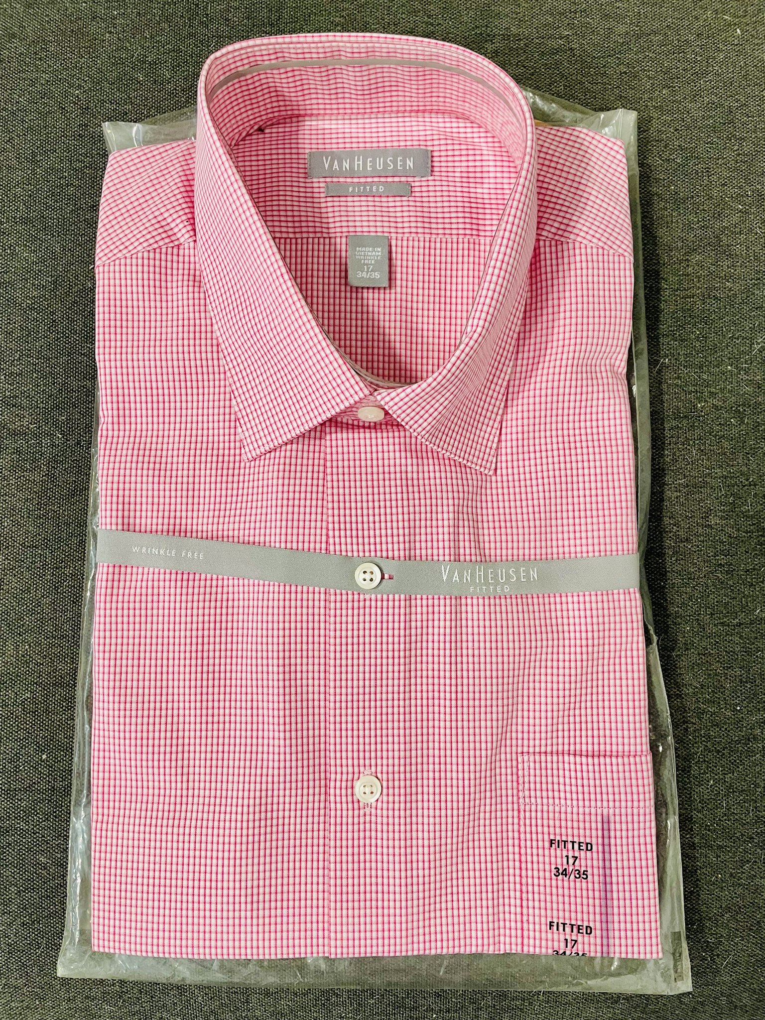 Koszula Van Heusen roz. 34/35, drobna krata biało-czerwona, widoczna na zbliżeniu, cena 39,90 zł